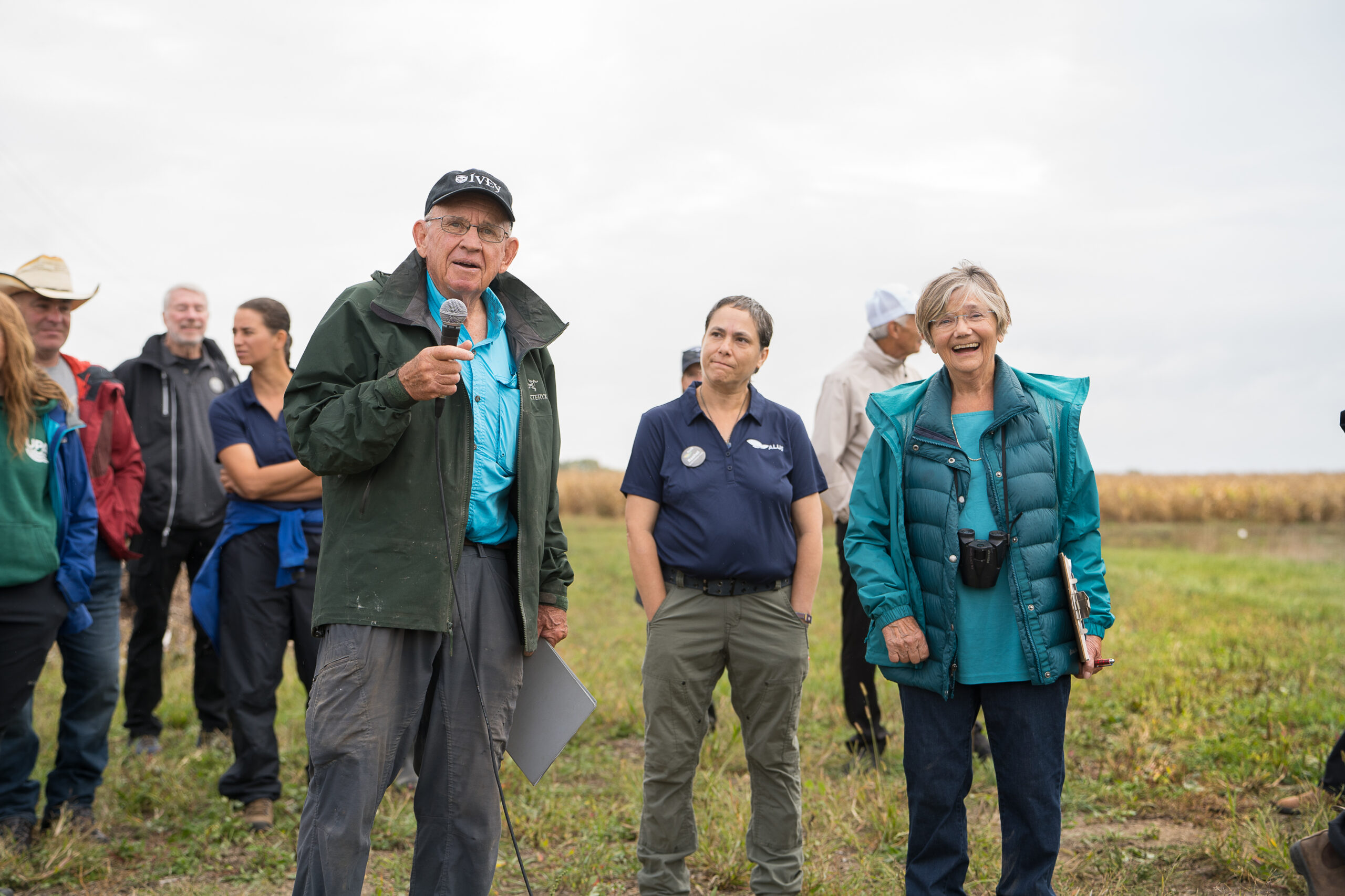 At Gutoskie Farm, Byron Gutoskie showcased test plots of native prairie and a tree demonstration area that are helping refine best practices for long-term restoration — a living classroom for adaptive management.