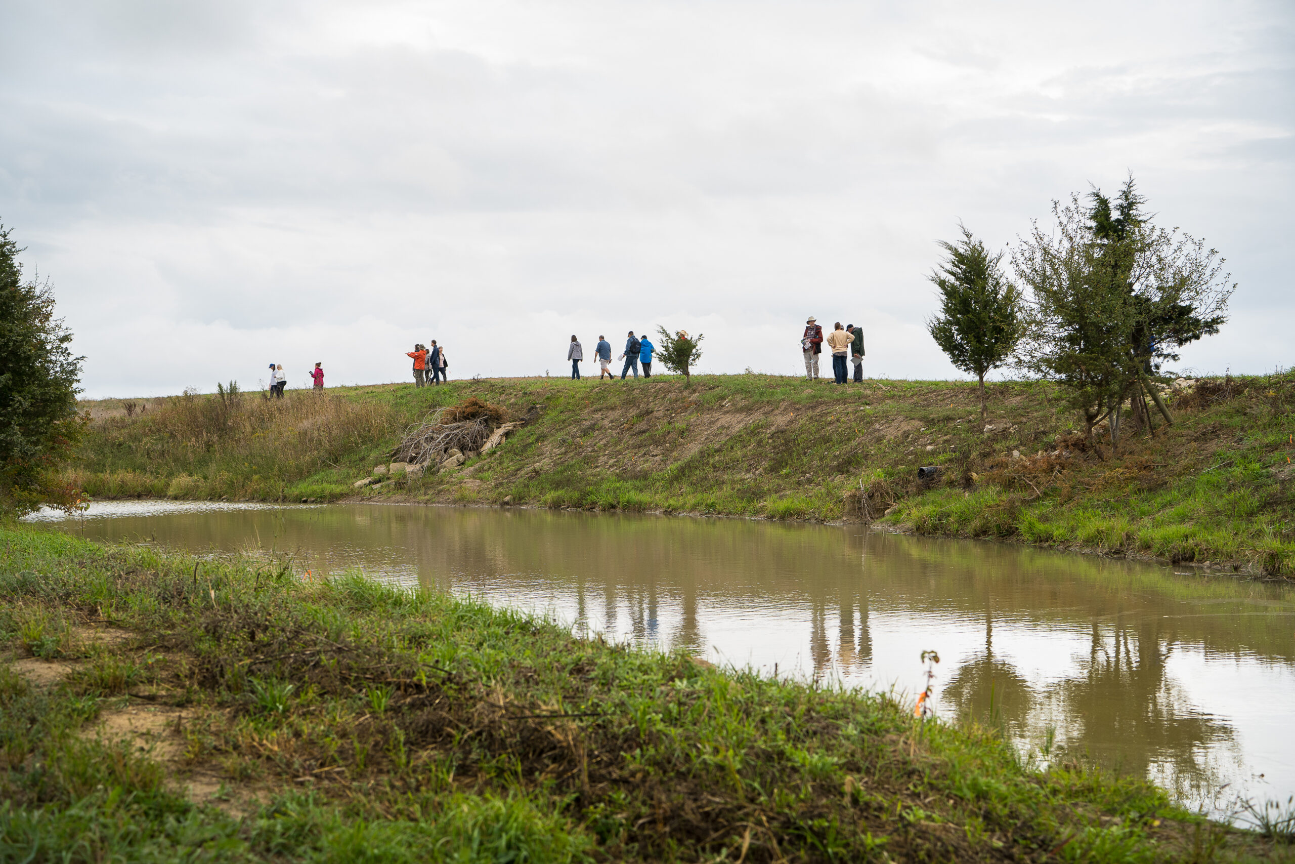 West Hub Participants at Springvale Colony, a community-scale bioengineering project that uses live willow cuttings to stabilize eroding banks along the Rosebud River. >> Scroll to see East Hub Participants walking along a renaturalization project on Wolfe Creek Organic Farm.
